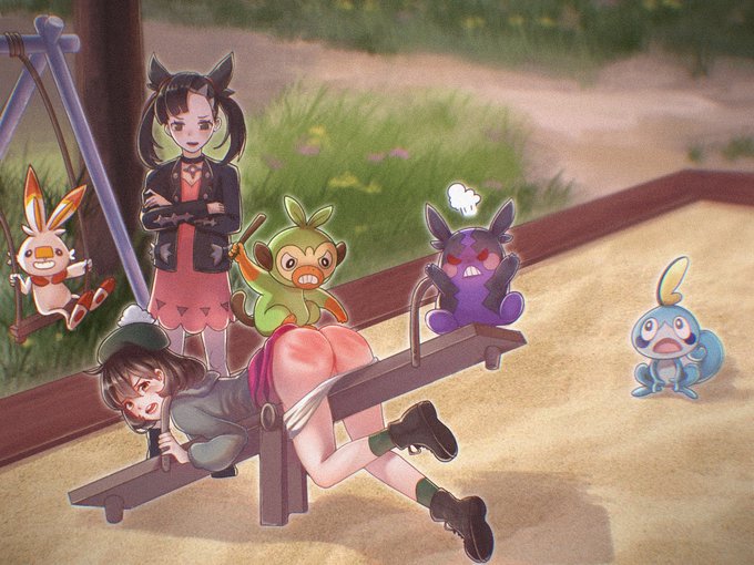 【本来想画因为头卡进跷跷板影响了宝可梦玩耍而被打,所以求救玛俐的感觉……