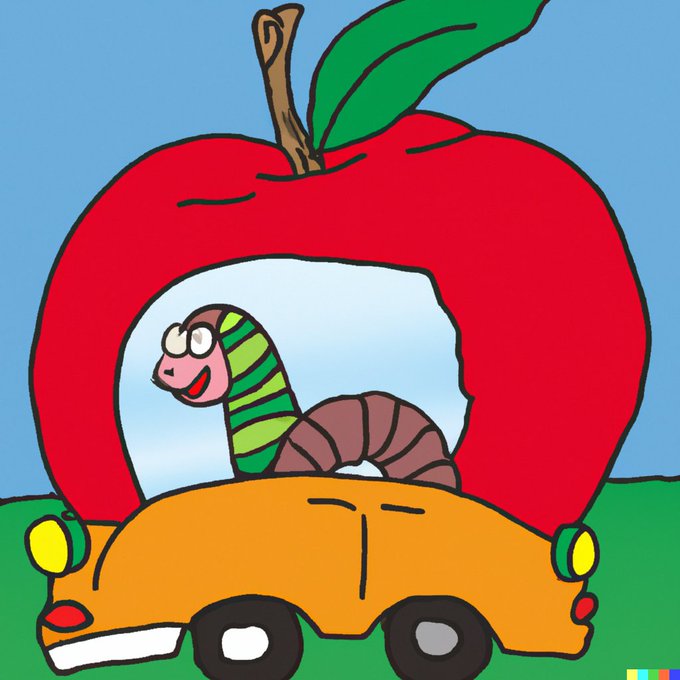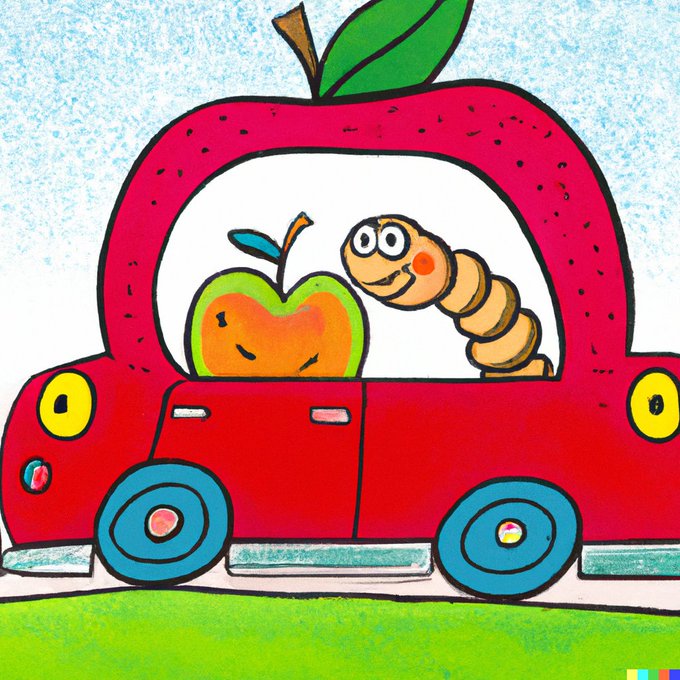 Worm in an apple car by Richard Scarry #dalle