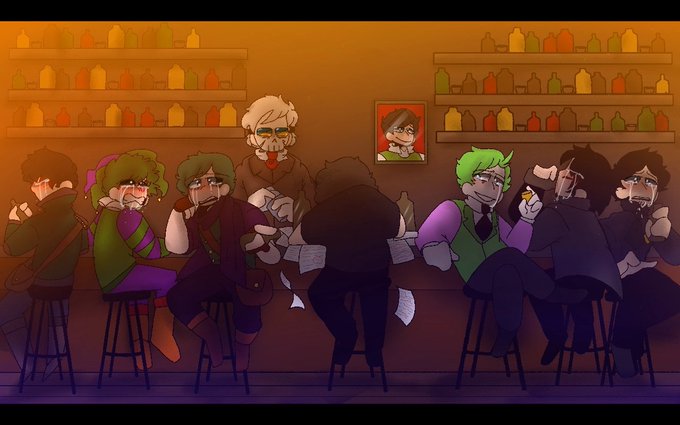Have the cover for the song Bottle Hit the ground! By @ToiletJon and all his incredibly angsty boyos we adore! Fucking love this one! So many heart broken boys for ya to see! And with an amazing song that hits! YE loved drawing this!!