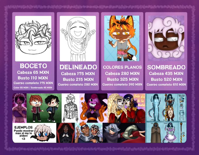 @LunalatunaMtz Aqui dejo referencias de algunos chibis he hecho!! Junto con mis precios y asi