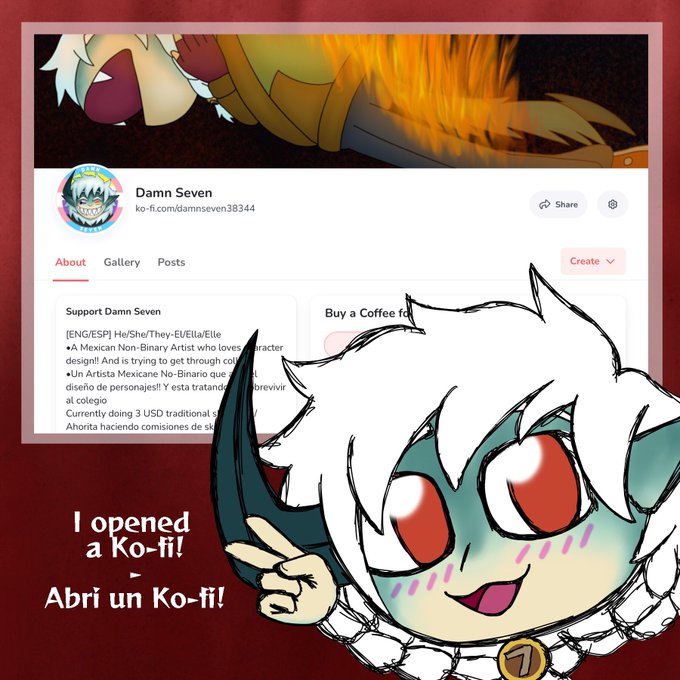 Hey! I’m Seven, a Mexican Non-Binary artist and I just opened a ko-fi!! I’ll be doing commissions over there, more info below, any support is super appreciated! 💜