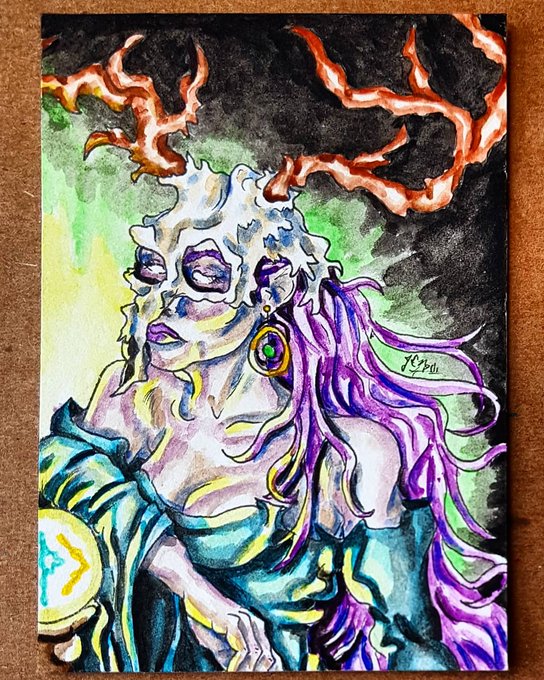 #art #artistsontwitter #sketchcard #atc #artisttradingcard #aceo #gouache #fantasy #traditionalart #mythology #greek #god