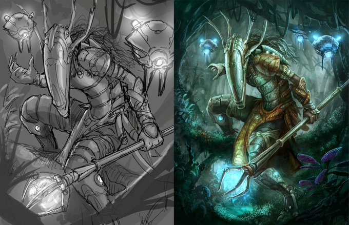 Our Shield Guard side by side Sketch -> Final comparison! #gamedev #indiedev #indiegame #conceptart