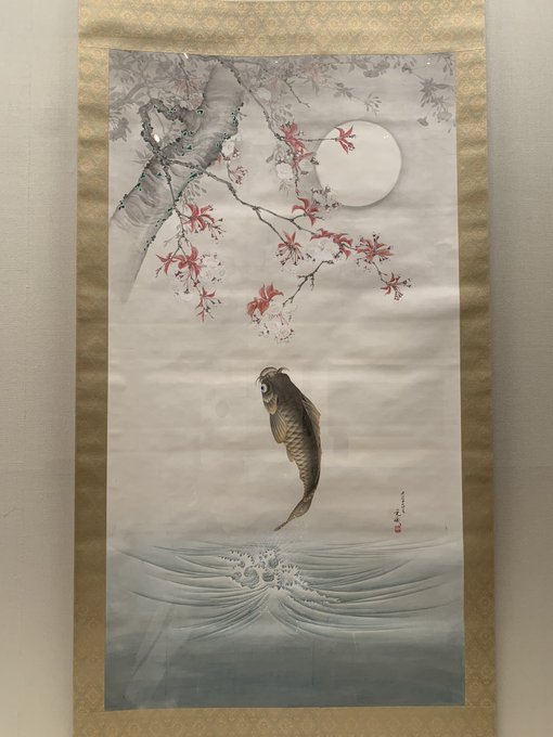 先日、甘酒 @kanimamesan さんのツイートで知った #飯島光峨 の《花下躍鯉》、やっと実物に会えました🤩