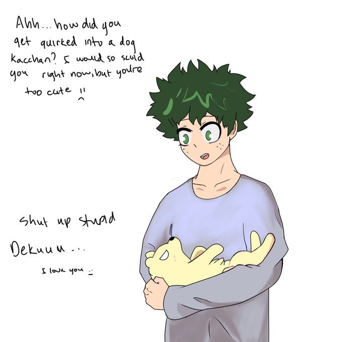 Katsuki wasn't paying attention when he accidentally gets quirked into a dog by a villain...at least his bf is here to keep him comfortable until he switches back #bkdk #bakudeku #ktdk #katsudeku