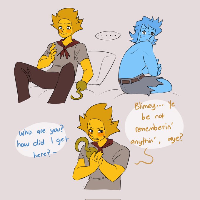 Doodles of warewolf Blue and pirate Orange cuz my brain was rotting over these two (more in threads)