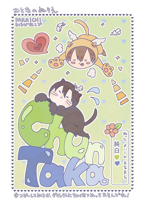 #よいこのちゅんたか 先生の可愛いイラストにお絵を塗らせて頂きました💚💙本当に可愛くて癒されました。☺️💕💕 可愛いイラストありがとうございます。🙏😊💖