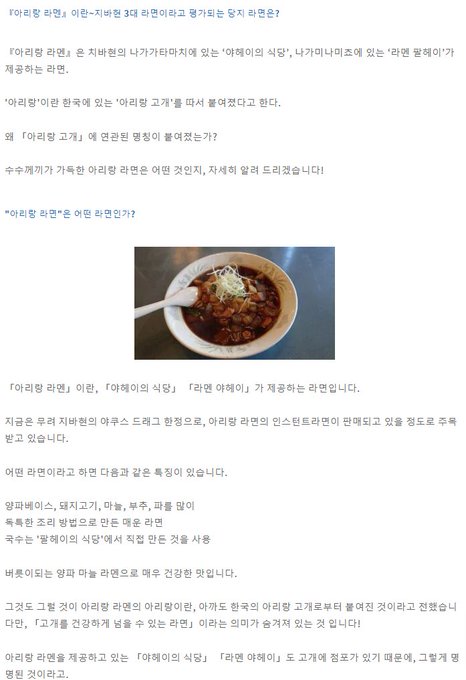 갑자기 '라멘 너무 좋아 코이즈미 씨'생각나서 연재하는데 가봤더니 뜬금없이 'アリランラーメン'(아리랑 라멘)이라는 타이틀이 뜨길래 ???싶어서 뒤져보니 진짜 그 아리랑이네..-_-;;