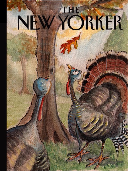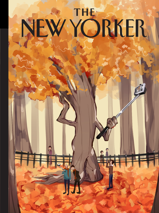 Gave my students a @NewYorker cover assignment, with "autumn" being the only theme. Here are two of my favorites.