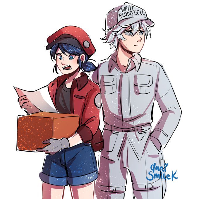 Estoy viendo el anime Hataraku Saibou/Cells at Work! Y no pude evitar imaginarme a Marinette como la torpe eritrocito/glóbulo rojo y a chatblanc como neutrofilo/glóbulo blanco como su protector 💕💖 estoy aprendiendo bastante a decir verdad con este anime 🤣👍 #miraculousladybug