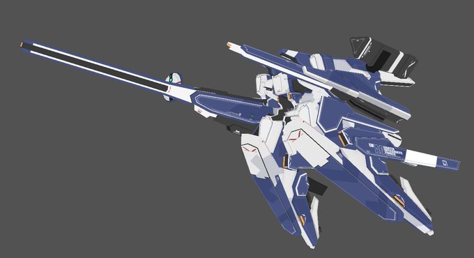 モデルはほぼ完成。シンプルにまとめたかったので、頭追加パーツ、腰部スラスター/可変翼ユニット、武装用サブアームユニット、踵追加パーツの構成