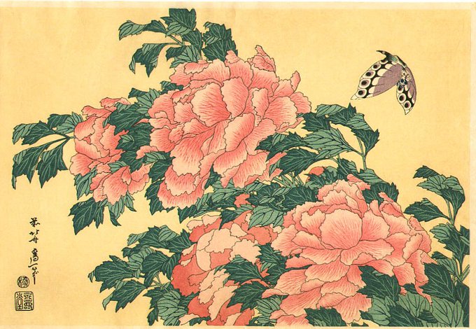 🌿Le papillon est vieux Mais son âme sur les chrysanthèmes Folâtre. La nonne Enomoto Seifu / poétesse japonaise (1732-1814) (Hokusai Katsushika)