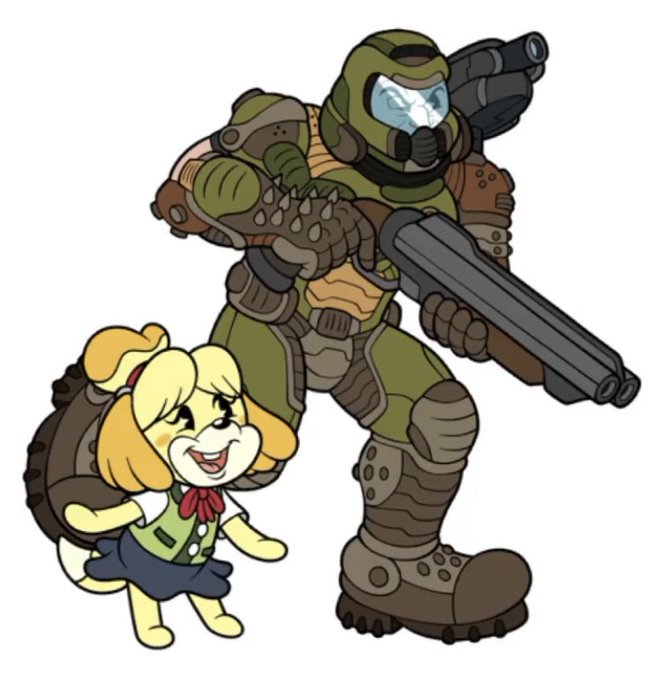 Day 89 of drawing every #SmashBros character in a style inspired by #Cuphead/ #Rubberhose/ #1930sCartoons!Before I get to the final character, you know I had to include the final Deluxe Mii outfit, Here’s the #DoomSlayer from #Doom!! Went all in with the details for this one lol!