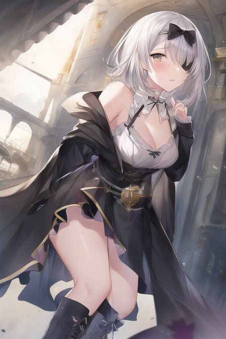 はい可愛い優勝 眼帯どうするかは最期の最後まで迷いそう。 #NovelAI