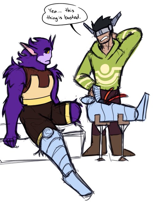 This one is about my OC Orion. Orion is a Hyposimian, an alien species that I made up that resides on a planet that has an average temperature moderately colder than Earth's. Orion's lower legs are mechanical because he lost his original ones years ago