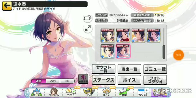 そういえば奏さんのSSRって色も系統?もみんなだいぶ違うよな…むちゃ贅沢やん…とか思いながら仕事の休憩中ずっと撮ってたやつ