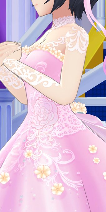 お花なんだろうな…? 髪飾りとドレスのスカート部分についてる花は花弁6枚だけど、胸元についてる花は5枚なんですよね 同じ花だけど花弁の数違うのか、別の花なのか… あとお腹の辺りにも花の柄ありますね こっちも何かなー あとでちゃんと調べねば…