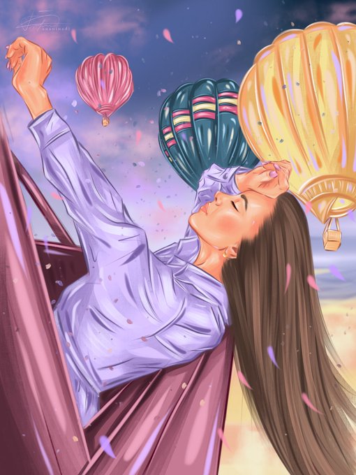 No history. I just drew my dream and the person I love very much. This is my close friend. I dedicated this artwork to her and her beauty, simplicity and lightness☺️💛.