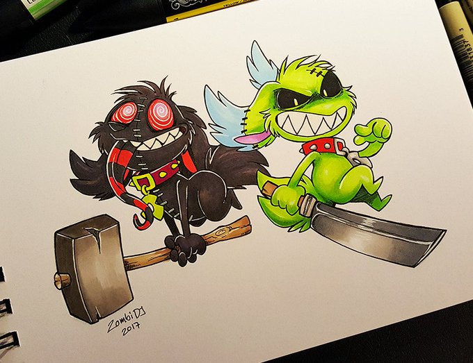 HUG ATTACK! Happy belated Birthday to my goofball of a boyfriend (2018-11-13) Art © ZombiDJ #artistsontwitter #artwork #zombidj