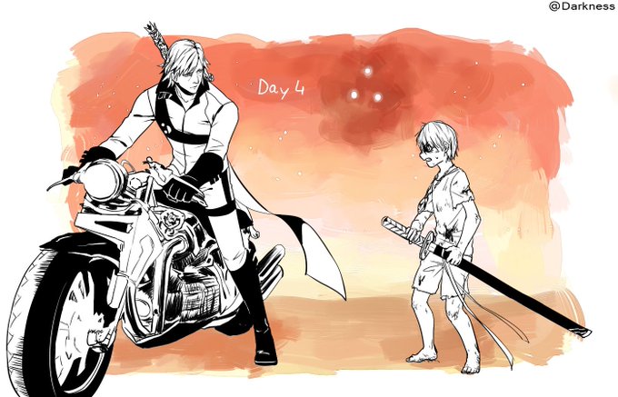 #dantevergilweek Day 4-time travel time travel in demon word (sorry I don't know how to draw a motorcycle so this is from the Settings book,)
