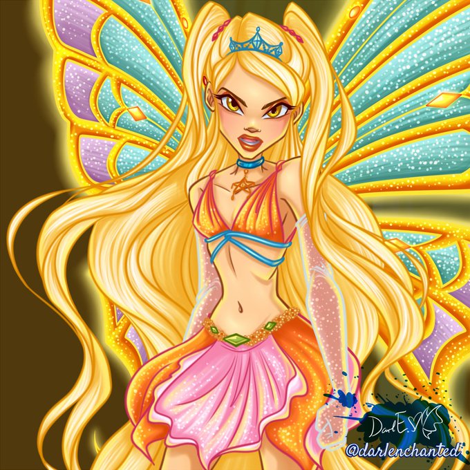Screencap redraw of Stella Enchantix from Winx Club season 3. I started drawing it three years ago, and left unfinished. But after seeing it now I hated it and started over.