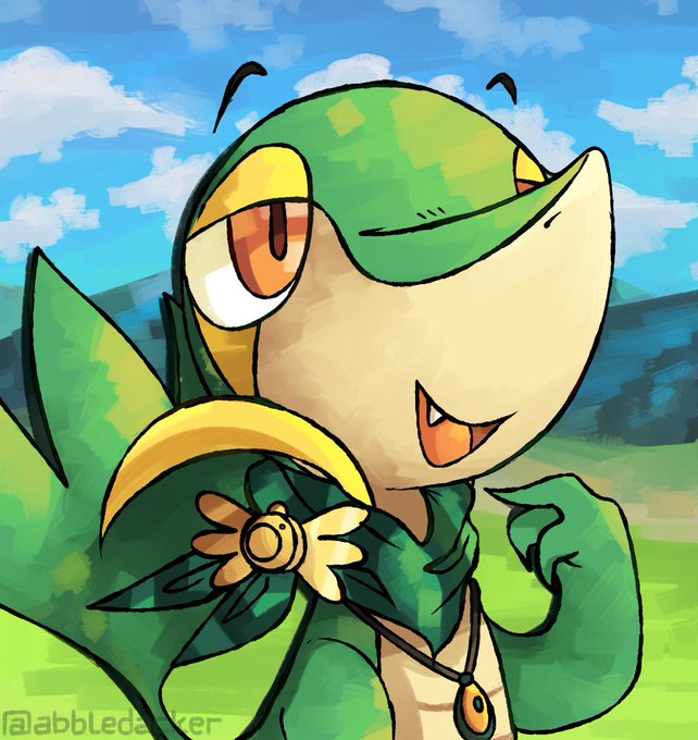 @Gladioh_ This is a very cool animation! Maybe something with a cool mystery dungeon like stance with my Snivy~ (mouth color is orange and badge yellow!)