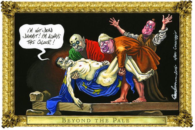 Some of the ghastly things found amongst the #Brussels debris... Today's @Independent cartoon. #EUreferendum