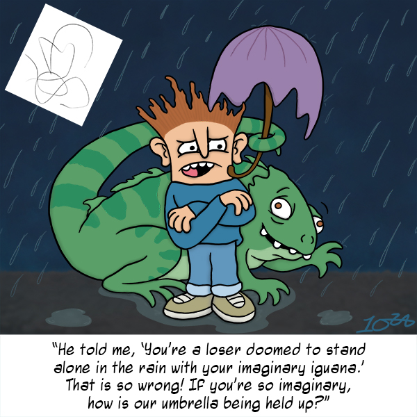 The December 2022 #ScribbleIntoArt is a guy with his non-imaginary iguana companion!