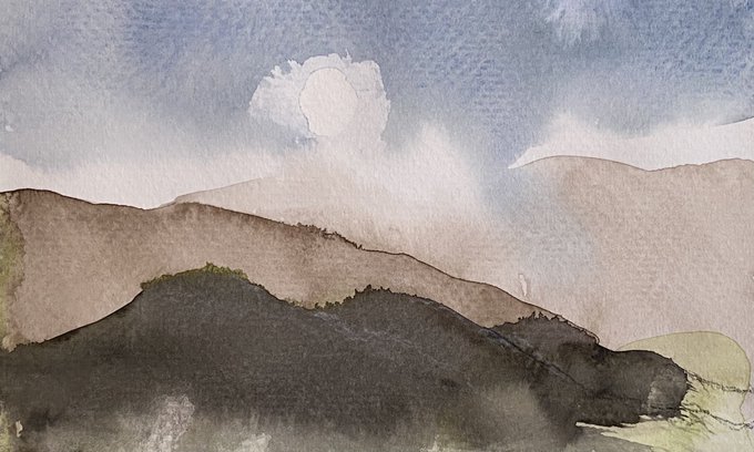 Experimental watercolours with grano medium over Gesso. Mmm... Sky’s with drama.