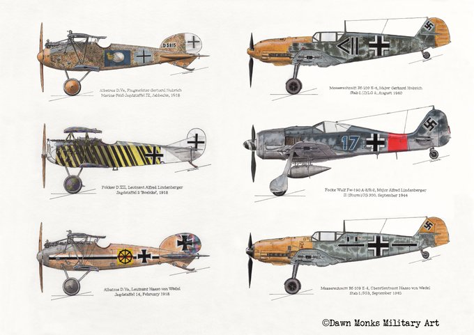 My choice of acrylic ink painting for 15th #Inktober2020 is "In Different Skies", for @IronCrossMag issue 5 - the First & Second WW aircraft of Hubrich, Lindenberger & Wedel.