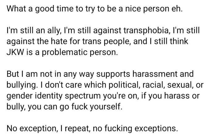 Also fuck the bandwagoners that harass everyone just for the sake of it. Shame on you.