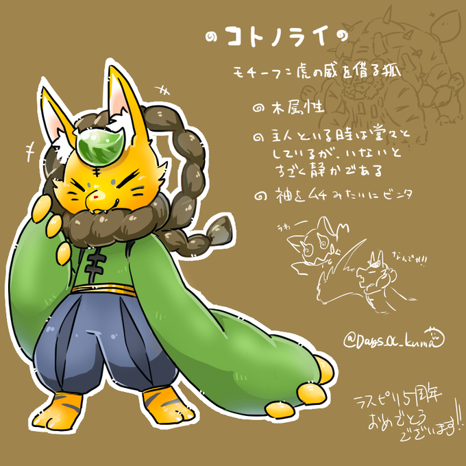 #ラスピリイラコン新デザ5 みかんちゃうで、狐やで もう1枚くらいと思って…5周年めでたい!!!