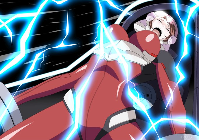 pixivリクエストイラストでギルティクラウンの篠宮綾瀬でパイスー電撃ピンチを描かせて頂きました!リクエストありがとうございました!二枚目はアニメスクショ風です #ギルティクラウン #パイロットスーツ