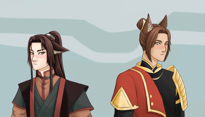 Успела всё-таки дорисовать кэтбоя Му Цина и догбоя Фэн Синя💜