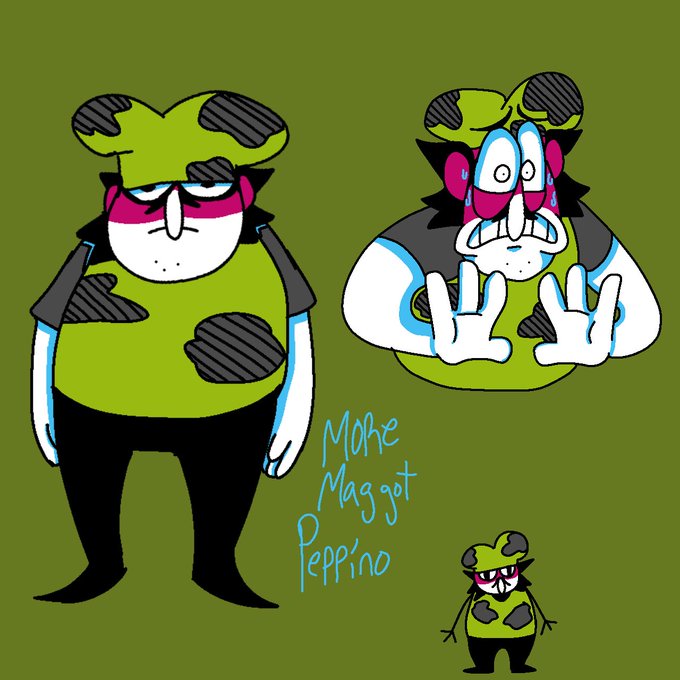 Drew more of Maggot Peppino. And thought of a scenario where Peppino teaches him how to make a pizza.