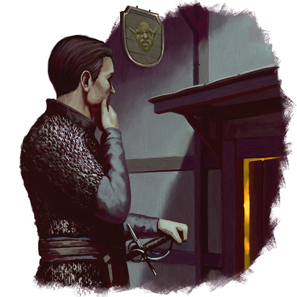 Colour: knight with mace and shield