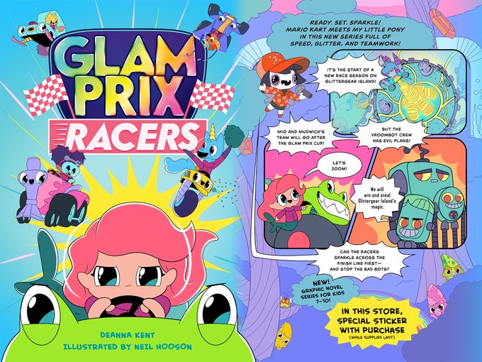 Big smiles here today.🧞♀️🧚🏾♀️🦄We can share the COVER of the first Glam Prix Racers, our new graphic novel series! This format has been a huge challenge for us as artists—SO much fun. Book 1 is out May 2021. Sparkle & Speed! @ImprintReads @gemma_cooper @RaincoastBooks @MacKidsBooks