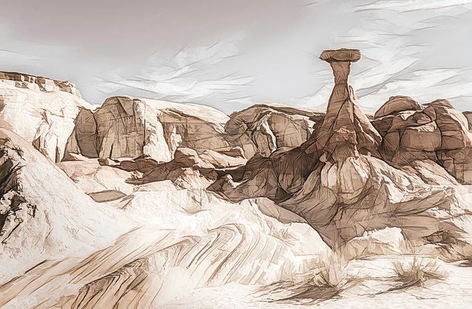Utah Toadstool Landscape - Digital Sketch by Debra Martz