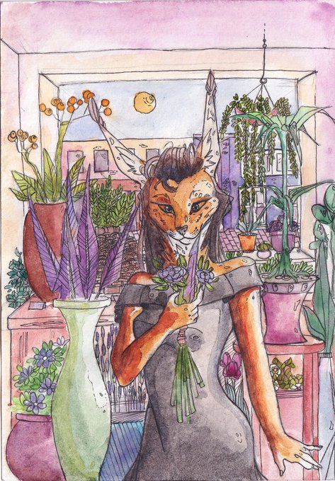 #furry #furryart #furryartwork #Watercolour #watercolor #commissionsopen #anthro #Flowers