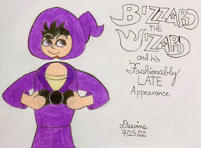 Some colored fanart of @Proton_Jon from July, featuring @jasperthecrab 's Bizzard the Wizard and @SkyTodStar 's Purple!