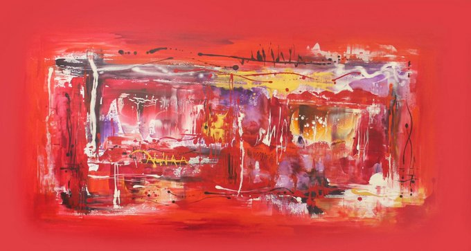 #Artwork of the day Silent Dream by Paresh Nrshinga Abstract on a rich red background w intricate details on #canvas