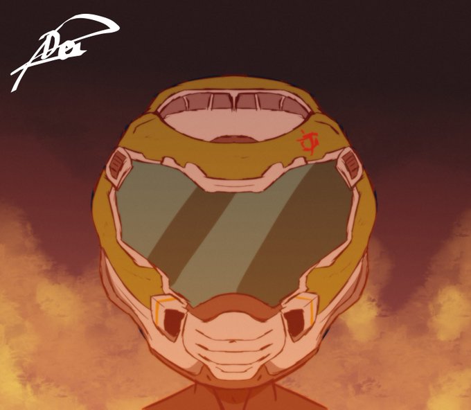 Just a quick edit of my OC Deimond in chibi form wearing Doomguy/Doom Slayer's helmet lol