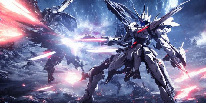 やっぱロボっぽいもの生成するの楽しいな... promptにWHITE GLINTだけ指示すると謎のおっさん出たけど、追加でGundam Exia入れたらWHITE GLINTを認識できた上になんか融合した、なぜだ...? #stablediffusion