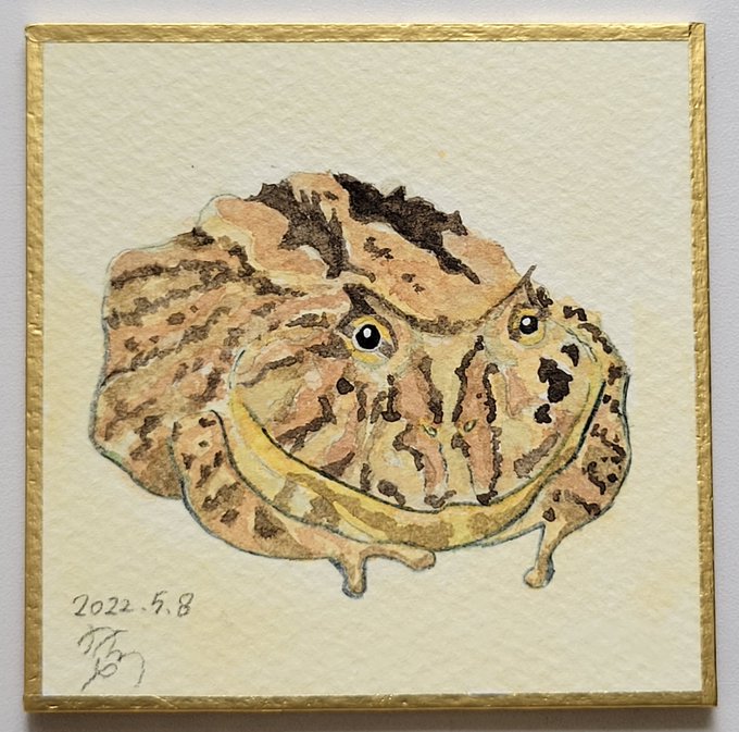#水彩強化マラソン2022春 #水彩日和 #イラスト #アナログイラスト #クランウエルツノガエル #カエル #両生類 #レプタイル #ホルベイン #シュミンケ #レンブラント #ホワイトアイビス 5/8、24日目。ペットのきなこちゃん。我が家で最強!ツノガエル可愛いよ!