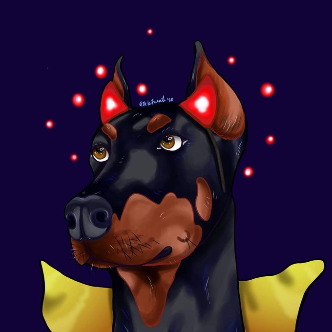 Final drawing + a pic un her first Halloween with costumes 🐶🙌🏼