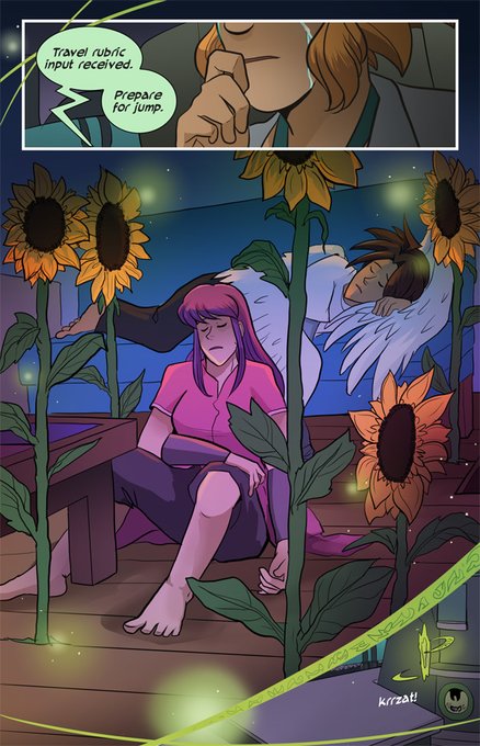 Along for the world-hopping hijinx is Rana, a cheerful tinkerer with an ability to talk to any machine. It's often her optimism & quick thinking that saves her reckless friends and keeps the peace... but she has big secrets of her own that might be the most dangerous of all. 🌻