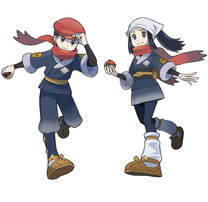 Pokémon Legends: Arceus character artwork and screenshots of Main characters Akari and Rei. #PokemonLegendsArceus #Pokemon