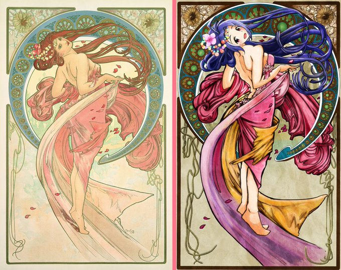さっきのミュシャ風あずささんのセルフ比較 本家の作品名はLES ARTS(日本語だと芸術)の「DANCE」といいます