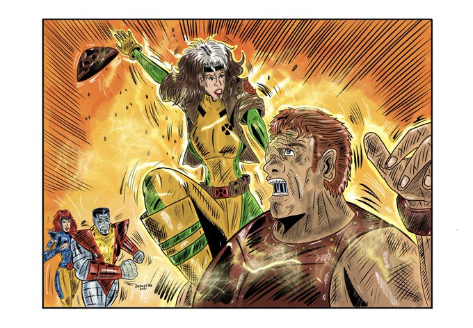 Here Challenge to Rogue commission fight again to juggernaut she take a power and other X-Men team using a procreate app iPad Pro #rogue #juggernaut #xmen #colossus #jeangrey #procreate #toddnauckartchallenge #toddnauck #marvel #ipadpro #commission #artwork #dennisyee