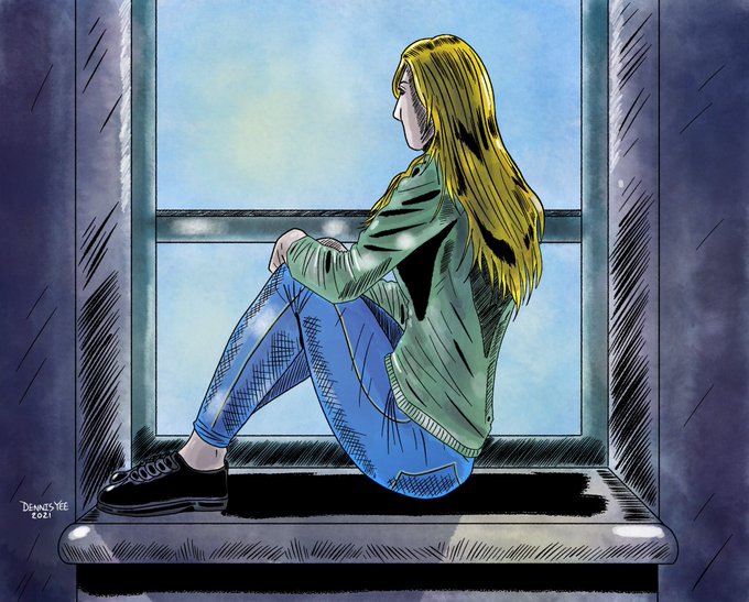 She sitting at window by herself #illustrationartists #illustration #comic #procreate #watercolor #art #comics #illustrator #artofinstagram #window #ipadpro #picture #procreateart #dennisyee
